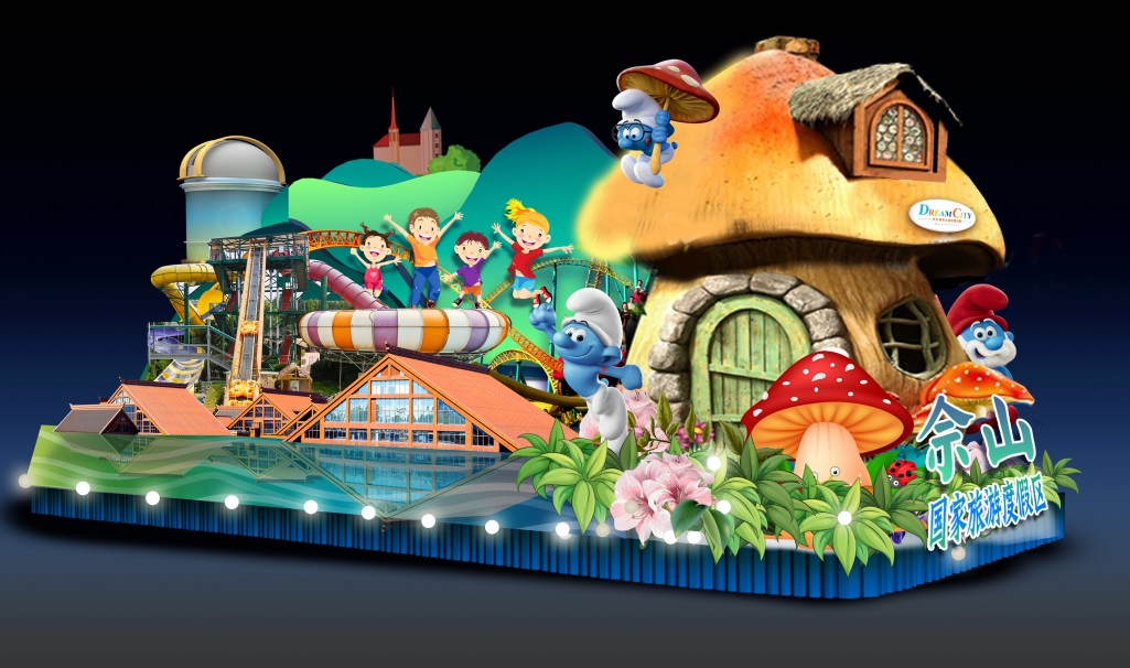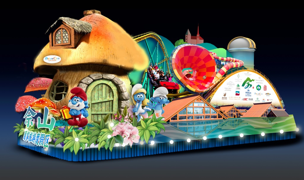 (佘山国家旅游度假区花车 蓝精灵首次亮相)